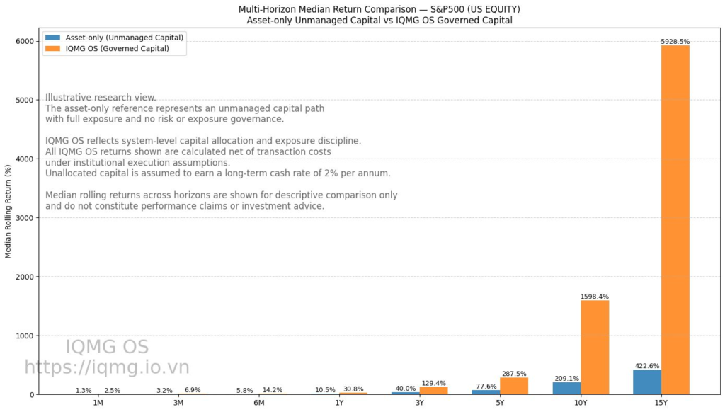 Assume scale reduces edge materially. Even a modest 1% annual geometric improvement: